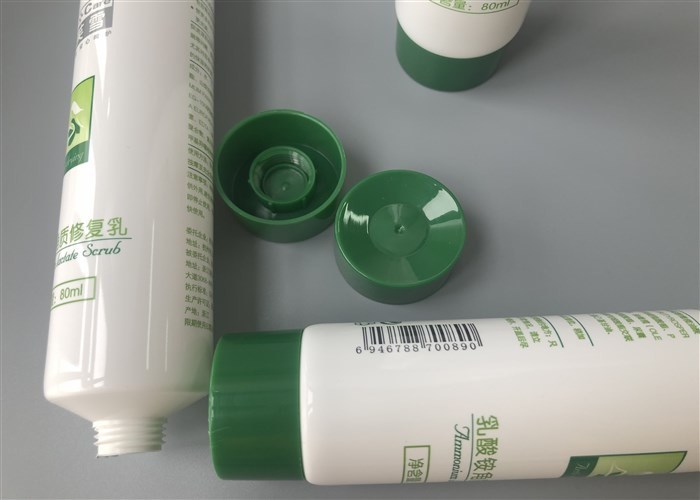 दूधिया सफेद मेड केयर प्लास्टिक लोशन ट्यूब 4 सी ऑफसेट प्रिंटिंग सीधे फ्लैट कैप 80 मि.ली.
